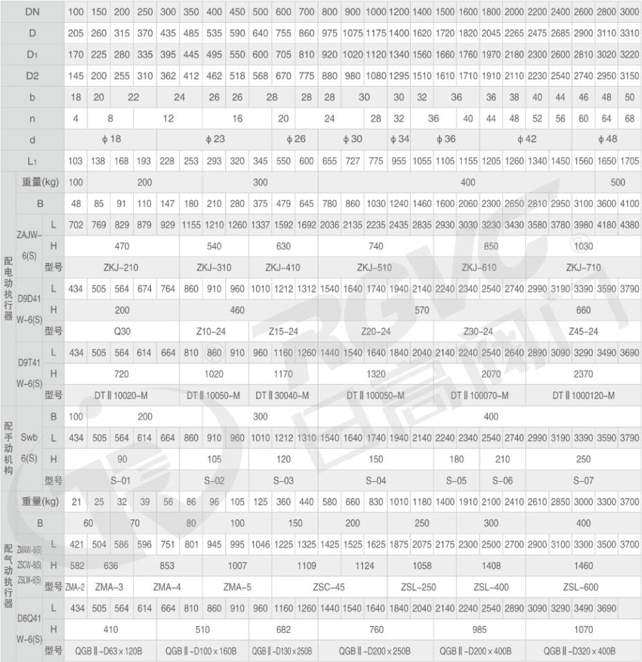 4、閥門整機(jī)重量為表中重量+執(zhí)行器重量。