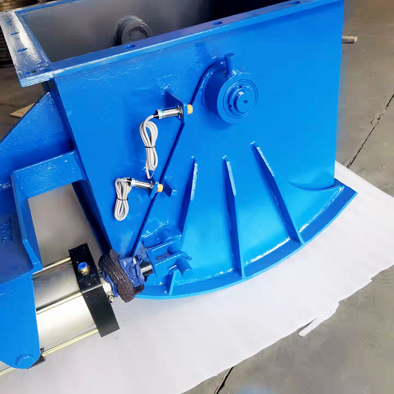 腭式閘門由本體、扇形閘板、軸、齒輪、密封件、執(zhí)行機構(gòu)等部件構(gòu)成。采用碳鋼焊接成形,結(jié)構(gòu)獨特,運行靈活可靠,無卡阻現(xiàn)象。配用不同的傳動裝置能滿足不同的工況需要。電動式閘門采用帶有超載保護裝置的電動推桿,可避免燒壞電機,可以遠距離操縱或程序控制,往復(fù)行程可以調(diào)節(jié)位置自鎖。電液動式閘門采用電液推桿,全液壓傳動,推拉力均可實現(xiàn)無級調(diào)速。氣動式閘門采用氣動推桿,通過配件組合可以遠距離操縱或現(xiàn)場控制。