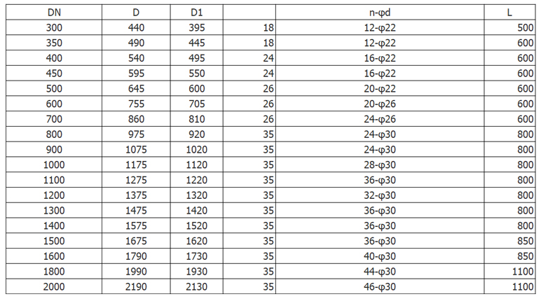 公稱(chēng)通徑:DN300~2000